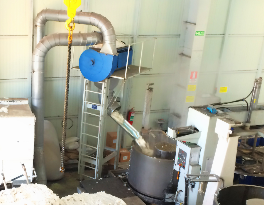 Parçalanmış elyaf vb ürünleri yapısını bozmadan belirli bir yerden alınıp,